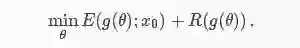 在实际应用中,g显著地改变了如何利用最优化方法搜索图像空间。除此之外,通过选择一个“好的”(可能是内射的)映射g,我们可以去除先验项。我们将g(θ)定义为fθ(z),其中f是深度卷积神经网络,参数θ和z是一个固定的输入,从而生成公式:
