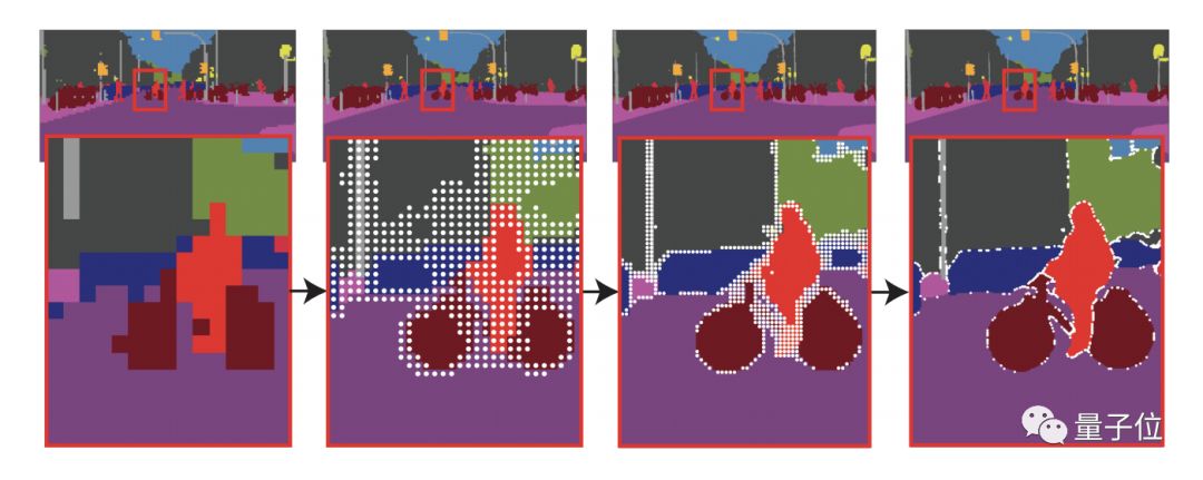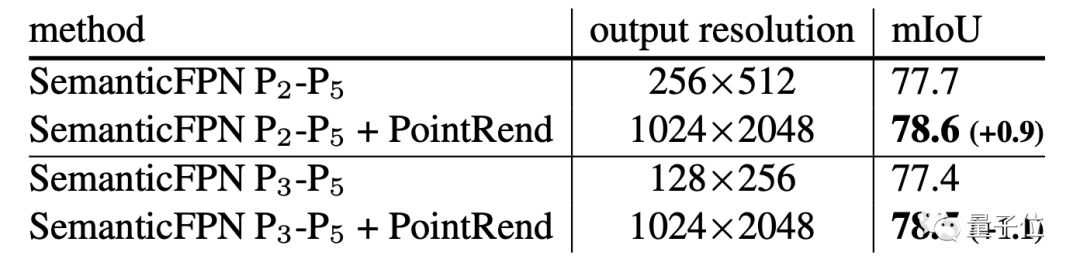 此外,通过自适应采样点, PointRend只预测32k点,就可以达到1024×2048分辨率(即2M点)。