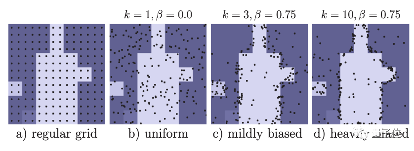 类似于光线追踪中的抗锯齿问题,这些点应该更密集地分布于高频区域(例如对象边界)附近。