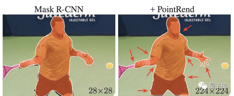 但直观效果随着分辨率提高变得更好,使用PointRend还能够抗锯齿。