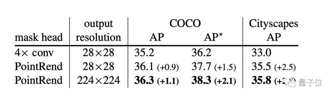 首先,他们将PointRend与Mask R-CNN默认的4×conv mask head进行了对比,使用的数据集是COCO和Cityscapes。