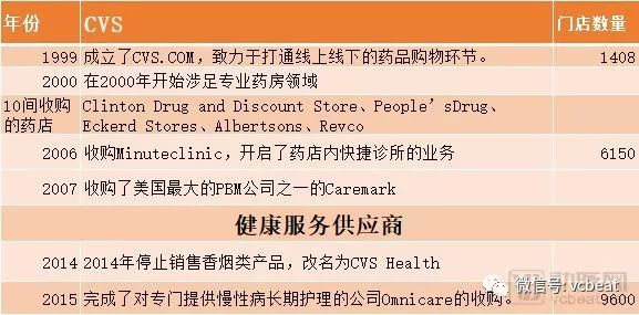 以此为线索,动脉网梳理了这个美国连锁药店巨头在数字化健康上的举措。传统的药店巨头,凭着财大气粗的优势,在前20年最惯用的伎俩就是收购,跑马圈地扩大门店数。但是从2010年开始,CVS的买买买就已经在为打造一个“PBM+医药零售+健康保险+医疗服务”的医疗服务体系。