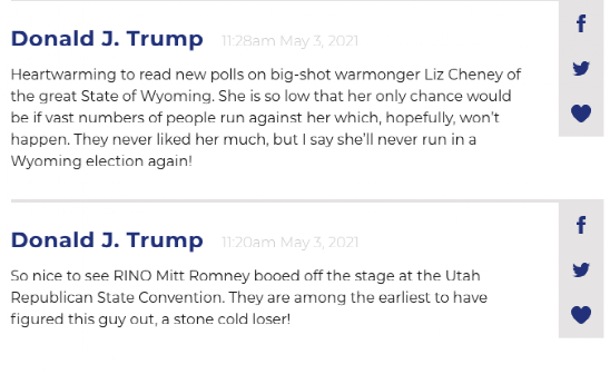然而,当这个新「平台」出世,有人感叹:这设计就像一个通用版本的Twitter,但是以博文的形式列出了川普此前发表的评论。