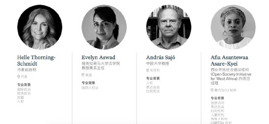 部分成员。其中包括丹麦前总理赫勒·索宁-施密特(Helle Thorning-Schmidt)和以色列司法部前总干事艾米·帕尔默(Emi Palmor)