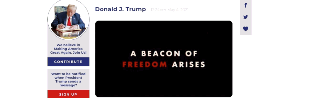 在承诺推出自主社交媒体网络几个月后,终于!前美国总统川普在周二为他的网站推出了一个新板块「来自川普办公桌的声音」(From the desk of Donald J. Trump) .