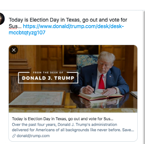 用户还被允许把川普的博文分享到Facebook和Twitter上。