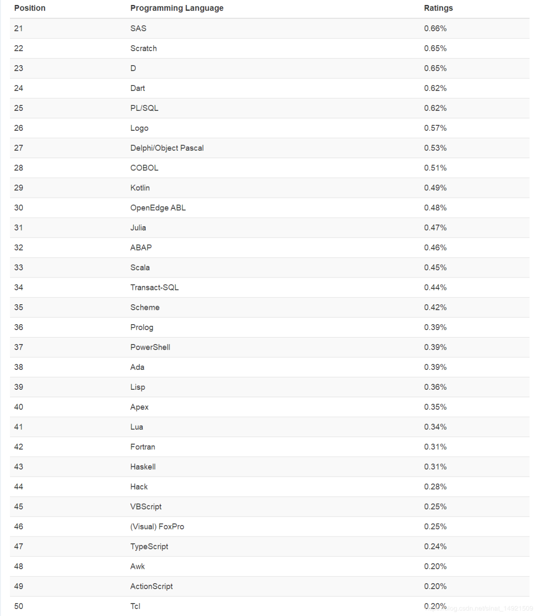 这个排行榜可以用来考查你的编程技能是否与时俱进,也可以在开发新系统时作为一个语言选择依据。