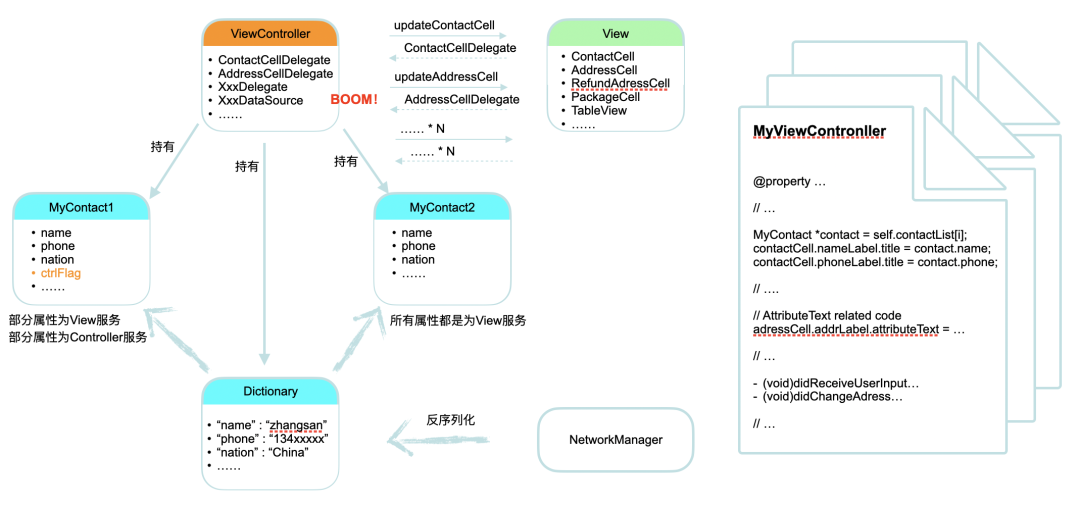补充: (1)MyContact 和 ContactViewModel 只是特意区分的命名,实际上 MyContact 也可以是纯粹为视图View服务的数据结构定义。 (2)但是,合适的命名有助于帮助我们思考和编码,从表达上呈现出我们的倾向和重点。