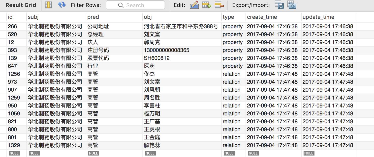 换句话说,我们直接能得到规范的实体(公司、人),以及规范的关系(高管),当然也可以把高管展开,用下一层关系,董事长、监事之类,这就需要做进一步的清洗,也可能需要做关系的对齐。