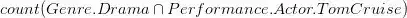 有了上面的定义,我们就可以把一个自然语言问题表示为一个可以在知识库中进行查询的逻辑形式,比如对于问句“Number of dramas starring Tom Cruise?”它对应的逻辑形式是: