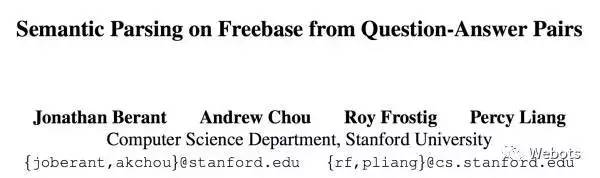 本期我们从传统方法之一的语义解析(有时也被称为语义分析)开始,以一个经典的语义解析 baseline 方法为例,介绍语义解析如何进行 KB-QA。该方法来自斯坦福 Berant J, Chou A, Frostig R, et al. 的Semantic Parsing on Freebase from Question-Answer Pairs,文章发表于 2013 年的 EMNLP 会议。