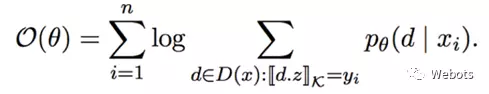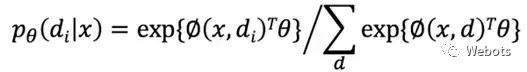 分类器的任务是计算每一种语法分析结果 d(Derivation)的概率,作者通过 discriminative log-linear model 进行 modeling,使用 Softmax 进行概率归一化,公式如下: