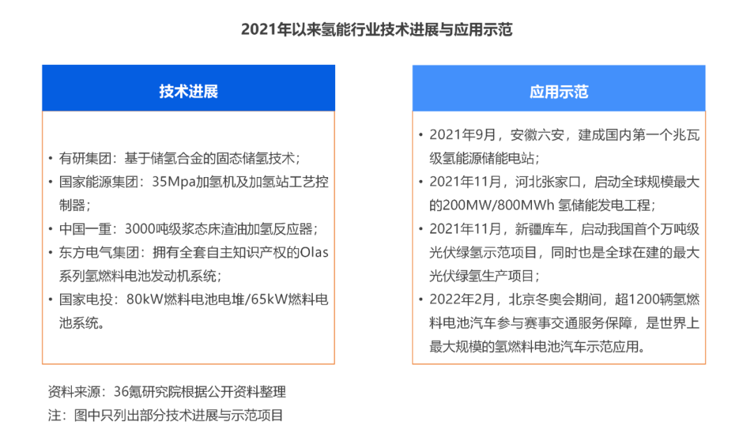 一方面,政策明确了实现氢能关键核心技术自主可控的目标愿景。2021年2月,科技部印发《关于对“十四五”国家重点研发计划“氢能技术”等18个重点专项2021年度项目申报指南征求意见的通知》,提出围绕氢能绿色制取与规模转存体系、氢能安全存储与快速输配体系、氢能便捷改质与高效动力系统以及“氢进万家”综合示范4个技术方向开展技术攻关工作。另一方面,重点企业如中国石化、中国石油、国家能源集团、国家电投、中船重工、东风集团、一汽集团、中国中车和宝武集团等,积极布局相关氢能产业链,在绿氢制取和储能、加氢站工艺控制系统、氢燃料电池发动机等方面取得一批技术研发和应用示范成果。