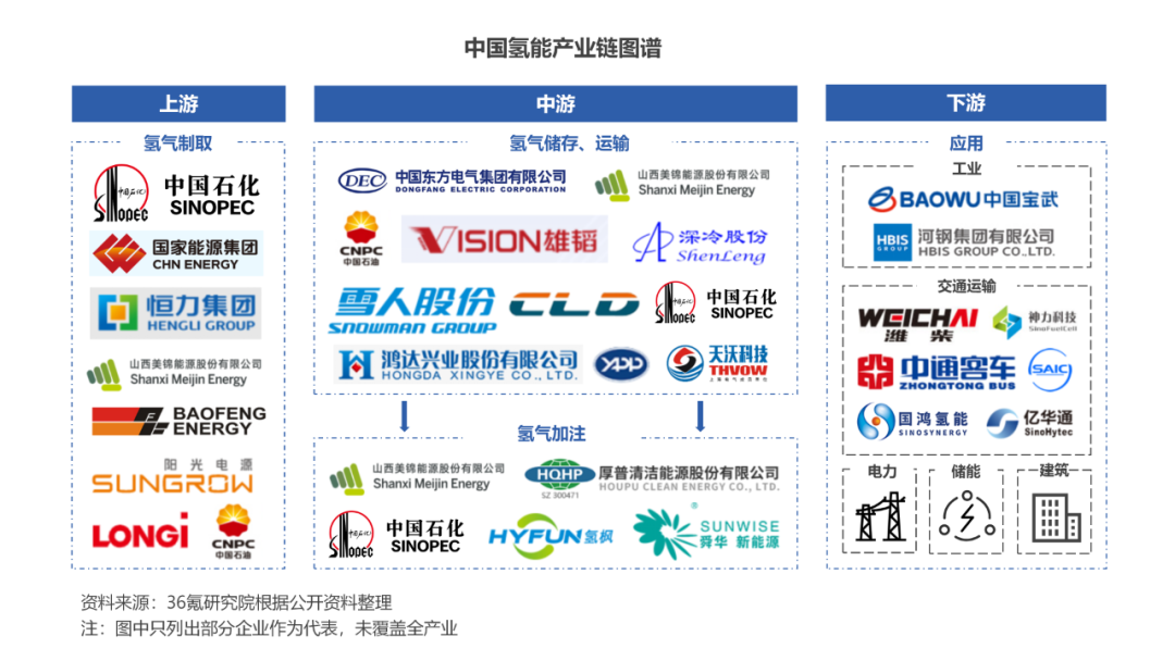 产业链结构:由上游氢气制取、中游氢气储运和加注、下游应用三部分组成
