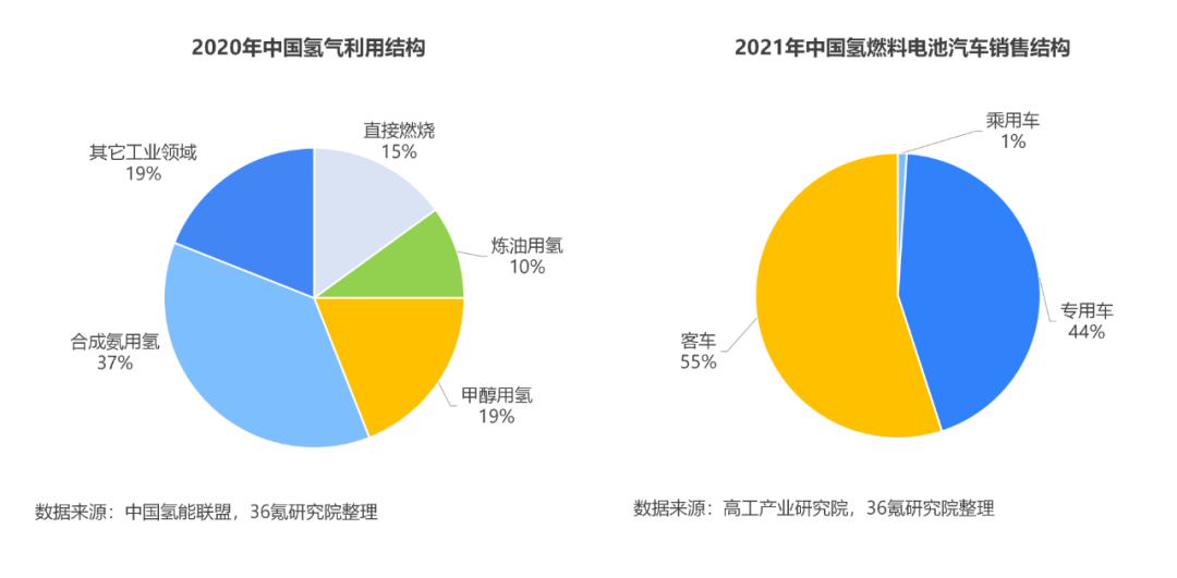 应用市场:工业是氢能最主要的应用领域,大型客车和重型货车是氢燃料电池核心应用场景