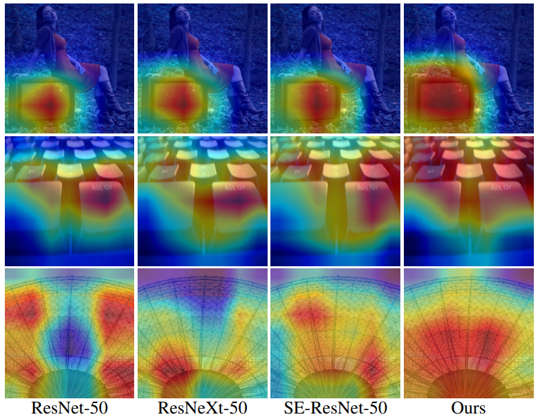 具体来说,与使用小核(如 3×3)融合空间和通道信息的标准卷积不同,研究者提出的自校准卷积通过新型自校准运算(self-calibration operation)围绕每个空间位置自适应地构建远程空间和通道间依赖。如此,通过整合更丰富的信息,CNN 可以生成判别性更强的标准。这种自校准卷积在设计上简单且具有通用性,同时在不引入额外参数和复杂度的情况下可以轻松地运用于扩增的标准卷积层。