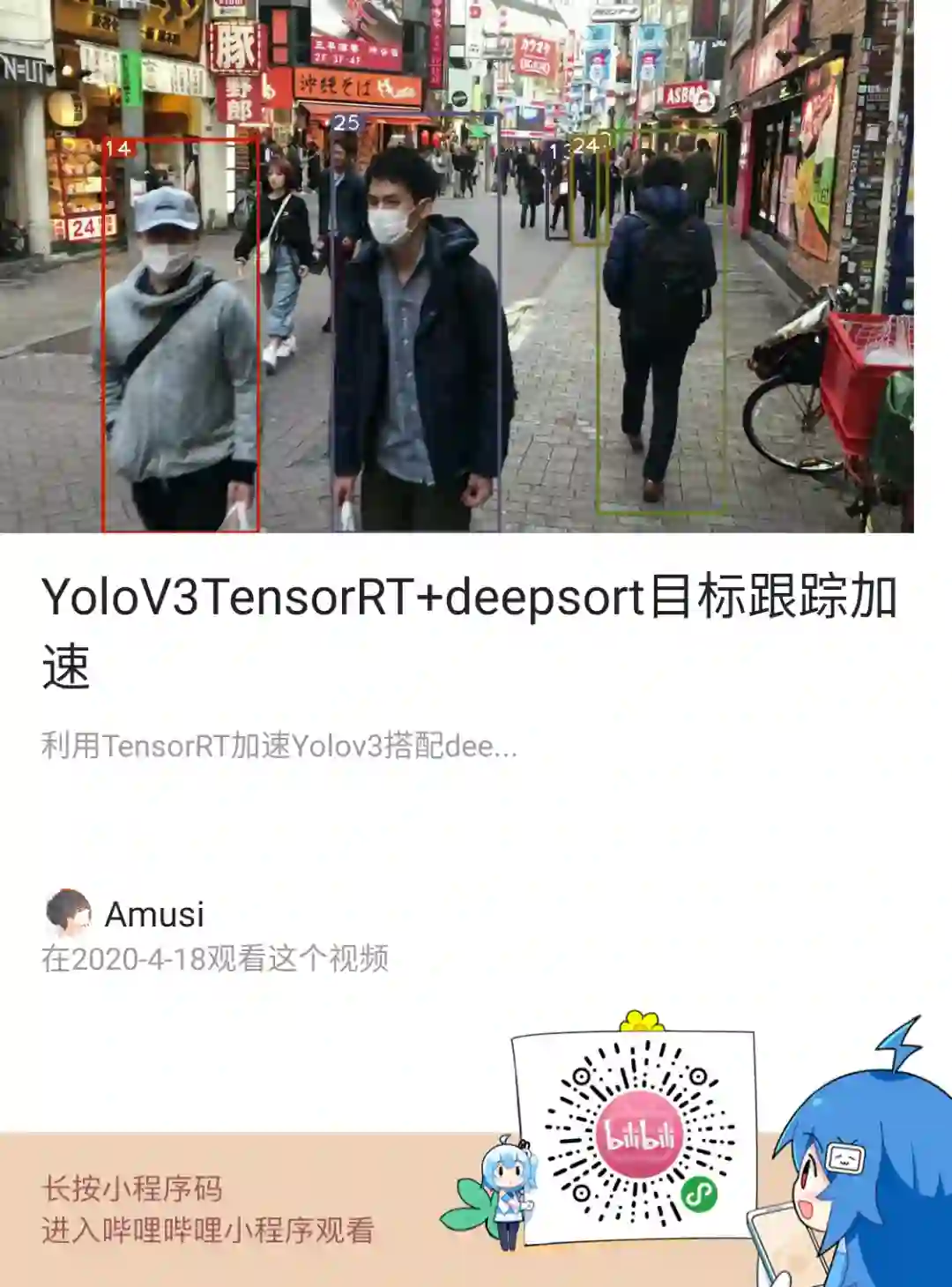 最近刚好需要利用目标跟踪整一些项目, 于是不太熟悉tensorflow的我找了一下torch的实现,不过找到的项目还是最基本的yolov3或者tiny的实现, 在速度上稍微慢一些, 实际在nano上实测约750ms左右的速度, 于是就启动了这个加速版本yolov3搭配deepsort的推断项目, 这篇文并不会说明完整的实现过程, 只会说明到一些实现的步骤