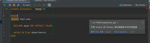 DataGrip会检测代码中可能存在的错误,并建议动态修复它们的最佳选项。它会立即让您了解未解决的对象,使用关键字作为标识符,并始终提供解决问题的方法。