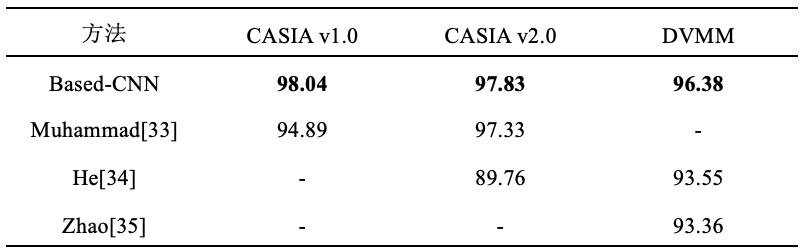 表2 首次基于CNN方法与传统方法的篡改检测准确率的比较