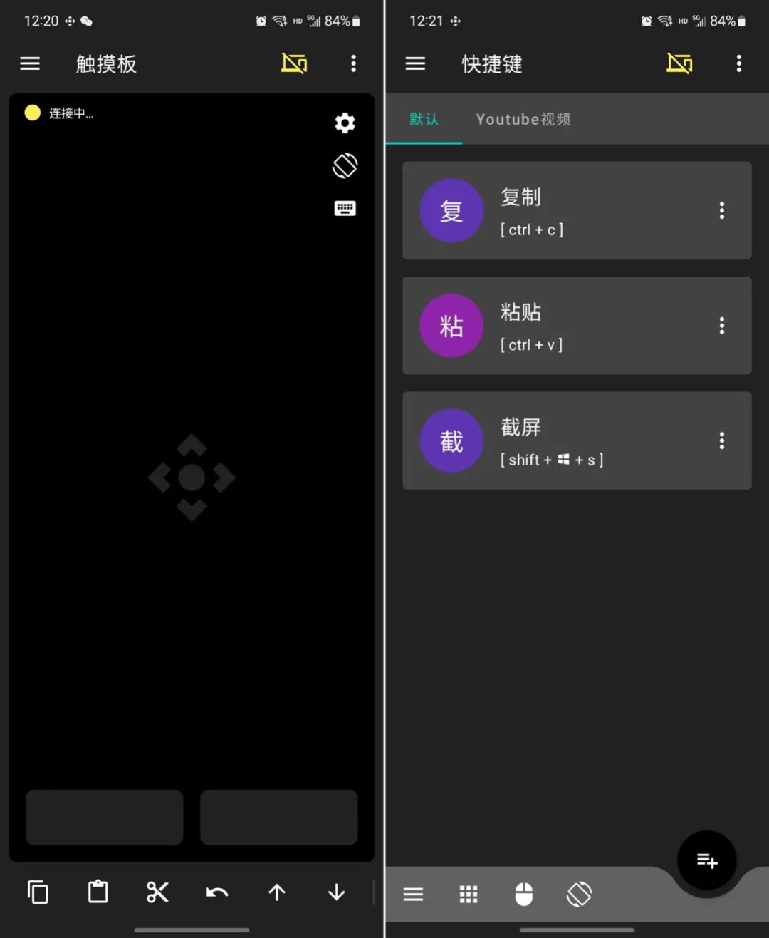 ,如果你当下的时间无法让电脑装好客户端,这款应用可以通过蓝牙直接把手机变成触控板,只需要完成配对即可。除此之外,它还自带了快捷键、小键盘、PPT 演示遥控器/激光笔等功能。付费版还可以解锁远程键盘功能。