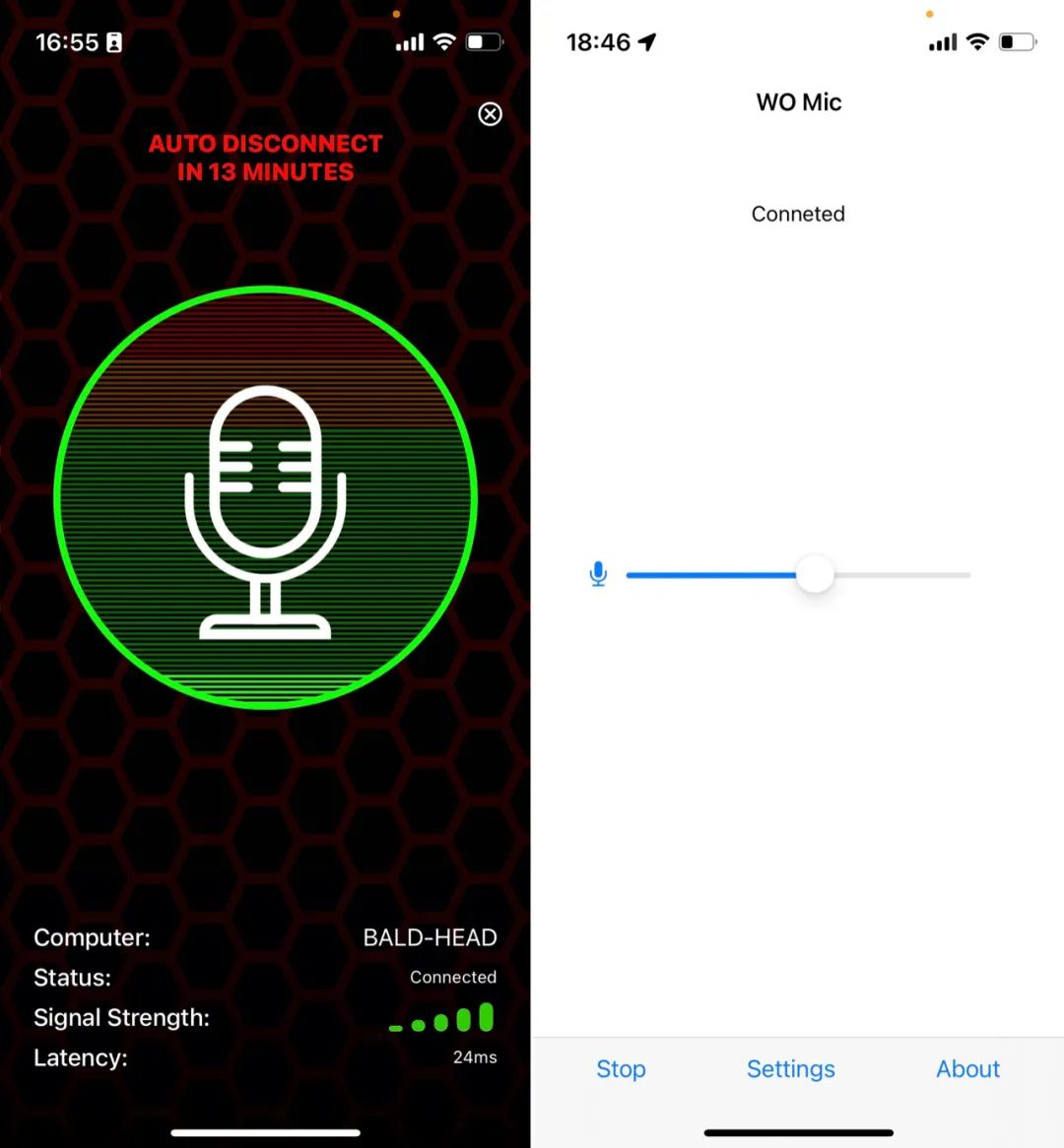左:EZ Mic 手机端界面;右:WO Mic 手机端界面