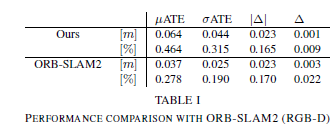 表1.TUM数据集文章方法与ORB-SLAM2效果比较1