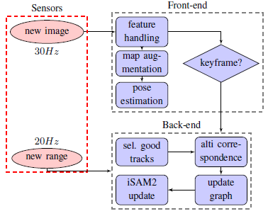 1. 提出了利用激光高度计来对单目视觉中的尺度不确定性进行修正。