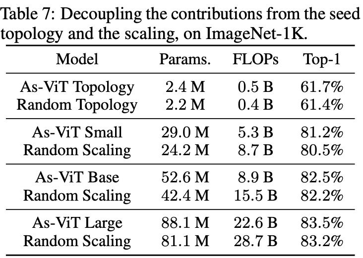 第二,该研究将基于复杂度的规则与「随机扩展 + As-ViT 拓扑」进行比较。在不同的扩展下,该研究的自动扩展也优于随机扩展。