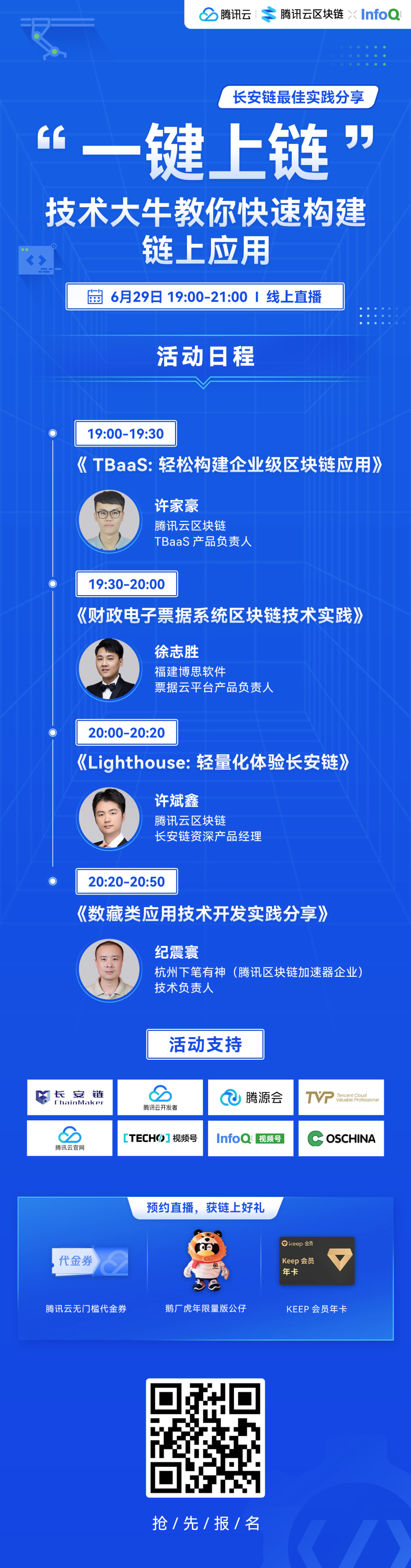 6 月 29 日晚 7 点,长安链最佳实践分享将在 InfoQ 视频号直播,技术大牛教你“一键上链”。