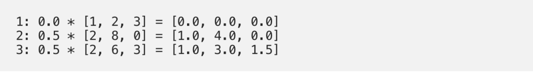 weighted_values = values[:,None] * attn_scores_softmax.T[:,:,None]# tensor([[[0.0000, 0.0000, 0.0000],# [0.0000, 0.0000, 0.0000],# [0.0000, 0.0000, 0.0000]],## [[1.0000, 4.0000, 0.0000],# [2.0000, 8.0000, 0.0000],# [1.8000, 7.2000, 0.0000]],## [[1.0000, 3.0000, 1.5000],# [0.0000, 0.0000, 0.0000],# [0.2000, 0.6000, 0.3000]]])