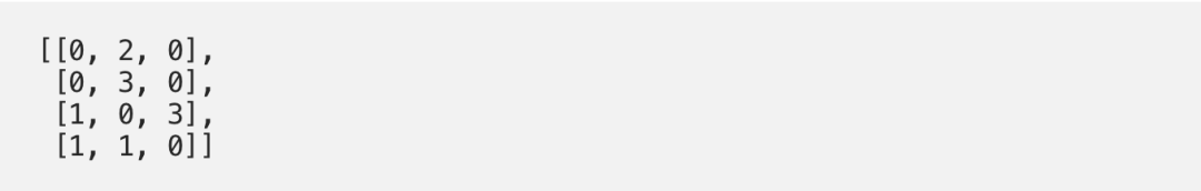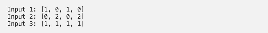 import torchx = [[1, 0, 1, 0], # Input 1[0, 2, 0, 2], # Input 2[1, 1, 1, 1] # Input 3]x = torch.tensor(x, dtype=torch.float32)