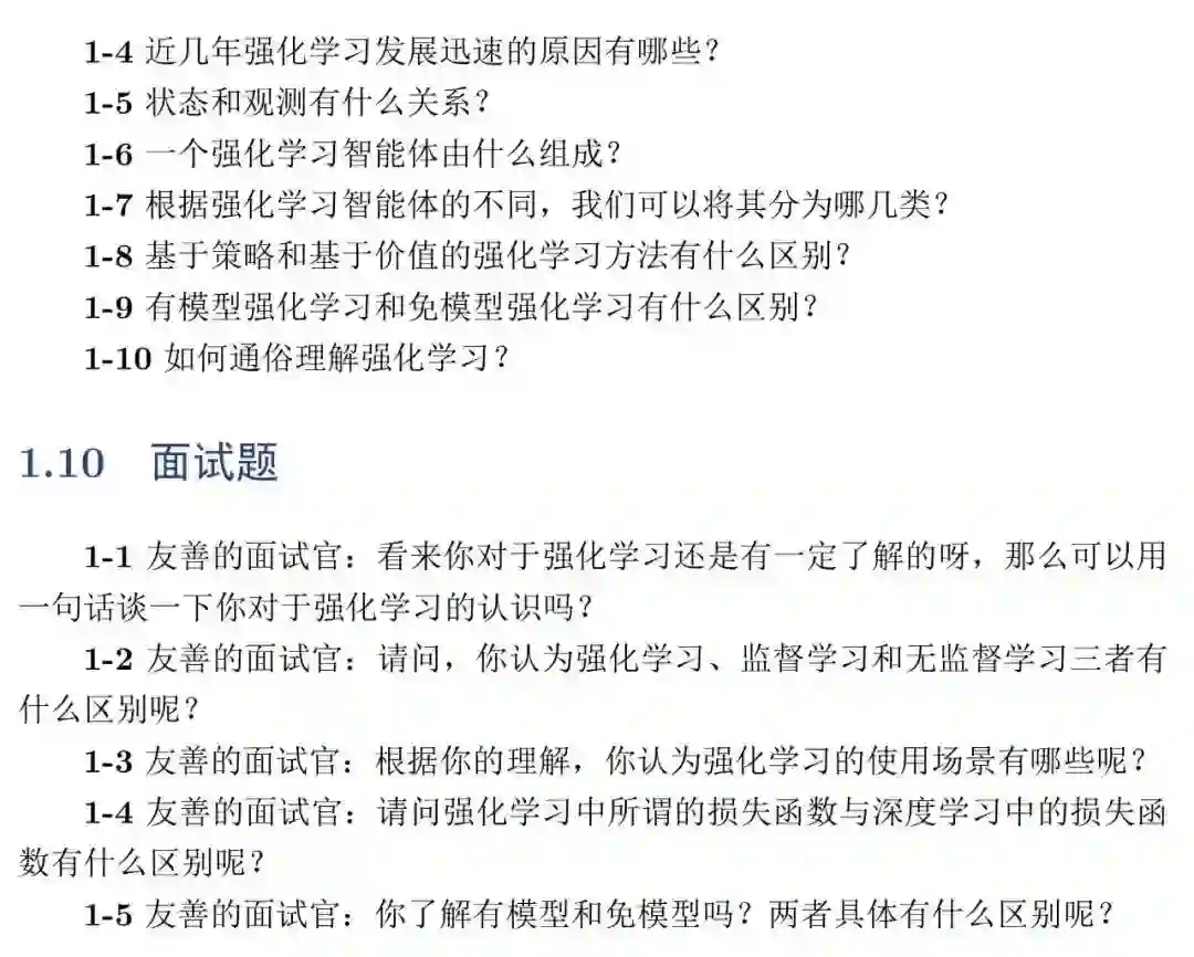 小异认为“蘑菇书”《Easy RL:强化学习教程》就是一本很典型的“学霸笔记”,既有老师上课画的重点——3门公开课的精华内容,还有学霸凝练的精华和扩展的内容——作者们在大部分章末设置了原创的关键词、习题和面试题,并提供Python代码实现,帮助读者提高和巩固对所学知识的清晰度和掌握度。