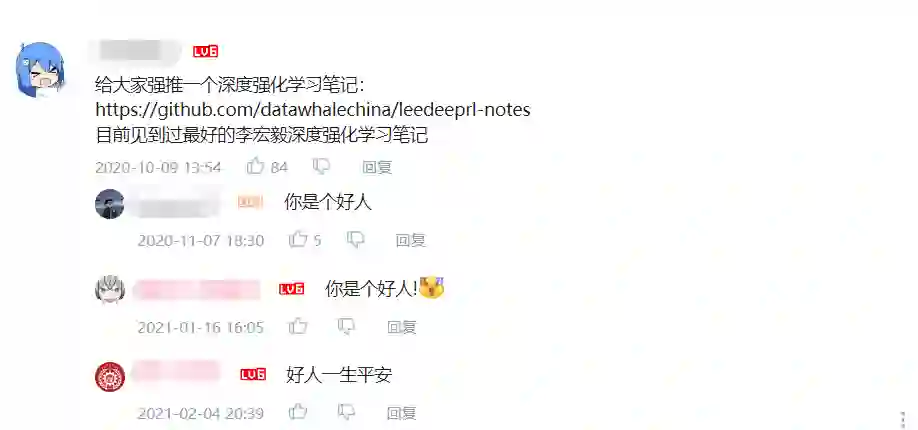 ▲B站上李宏毅老师的“深度强化学习”课程下的网友好评