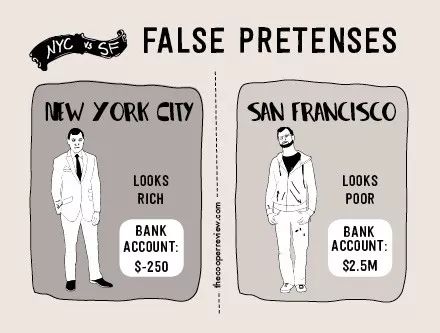 作为当代美利坚最繁华、最富有、最名声在外的两个地方,纽约和湾区差距似乎比两个国家的差距还大。