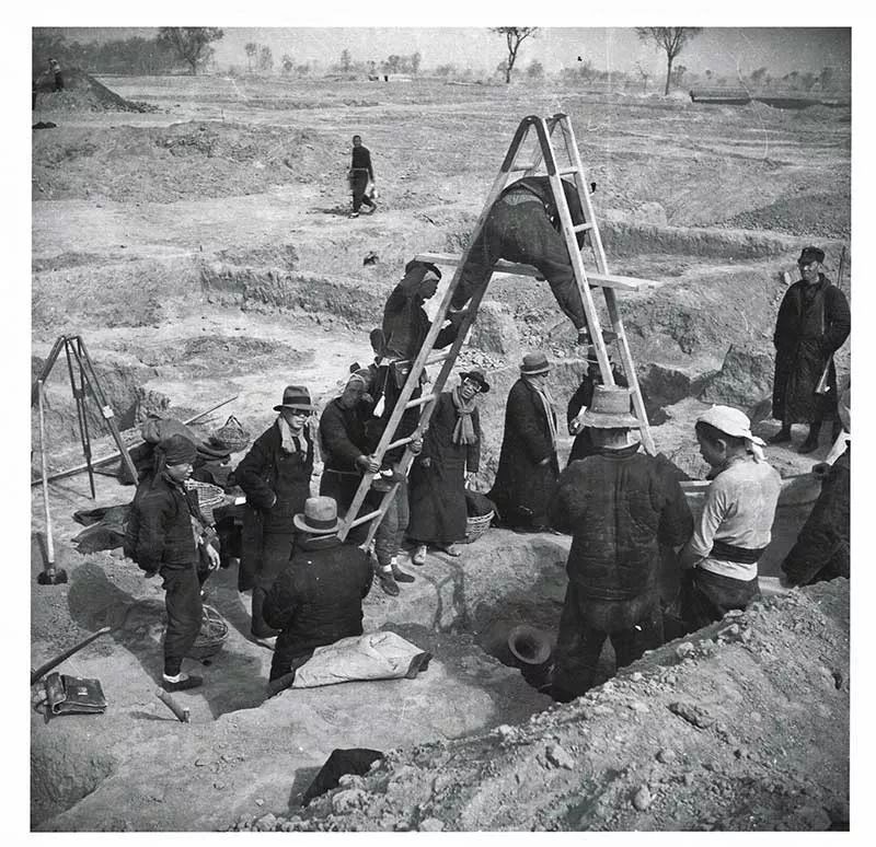 1937年,中央研究院历史语言研究所第十五次殷墟考古发掘,在殷墟宫殿宗庙区拍摄殷墓发掘场景。