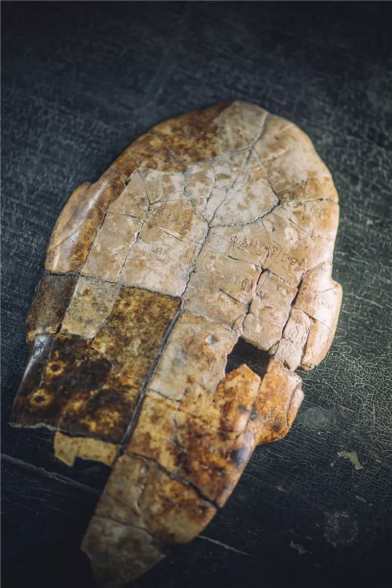 中国社会科学院考古研究所收藏的刻辞卜甲,这样一版完整的龟甲十分难得,多数龟甲出土后即破碎成小块(蔡小川 摄)