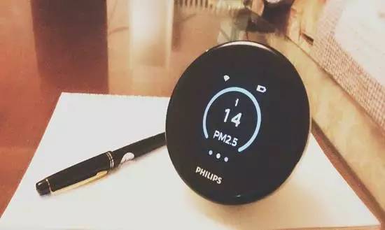 非常幸运的成为了被果壳选中的宝宝,有幸试用了飞利浦空气监测仪,下面来说说整体体验。拆开包装拿到PHILPS空气监测仪,外观是漏斗的形状,圆形切面是显示屏,背部有充电口和甲醛传感器的插入口。看起来很美观,适合放在书桌上随手测室内PM2.5和甲醛,可以说非常方便了。