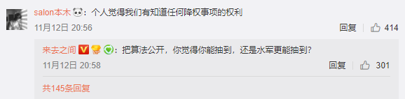 如果抽奖并非发生在线上而是发生在线下,这一筛选过程的画面无限接近舞弊。我们是否可以认为,微博抽奖在不告知用户的情况下,早已坚持舞弊多年?