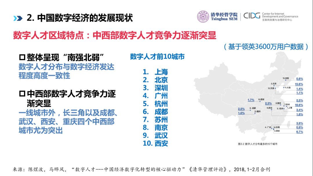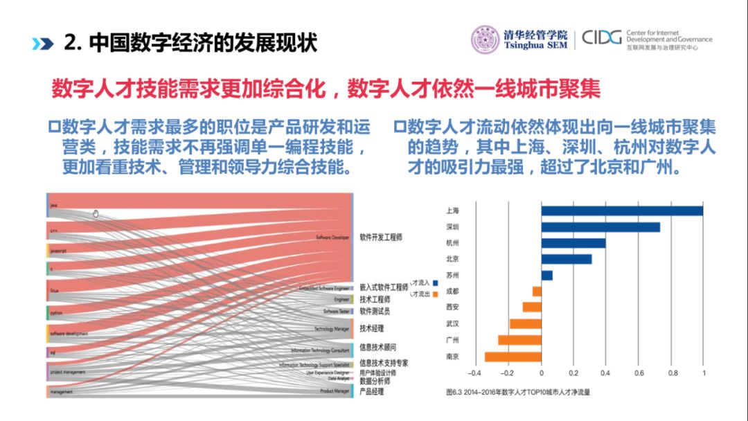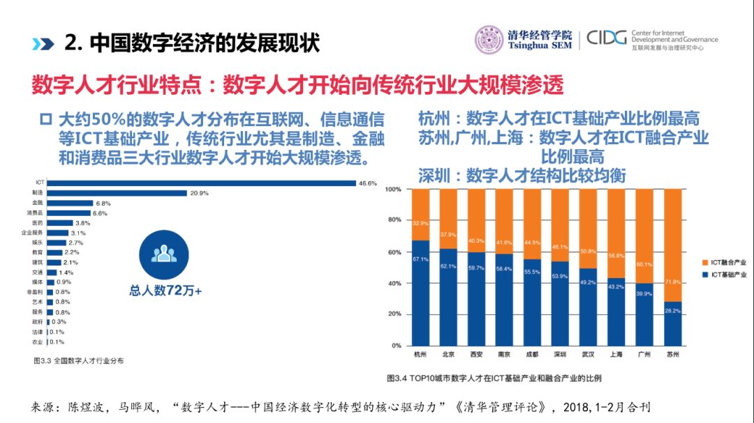 另外我们发现数字人才已经向传统行业渗透,将近一半数字人才仍然在ICT的基础产业,但是制造业占到20.9%,金融业、消费品、医疗行业都有相当比例的数字人才,说明中国在大量传统行业已经开始有很多的数字人才的储备。