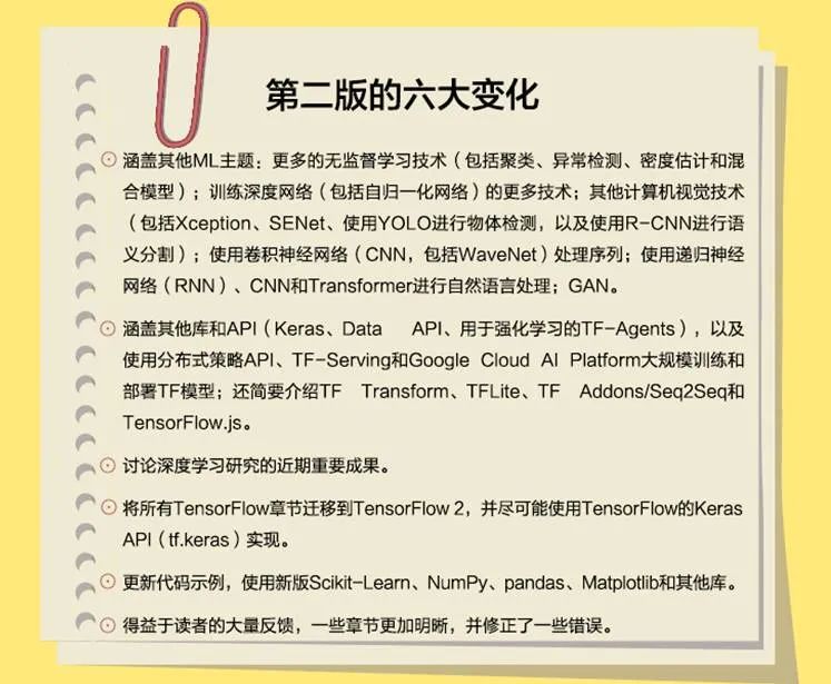 需要。第二版基于最新的TensorFlow 2和新版Scikit-Learn全面升级,内容增加近一倍。作者对书中的代码和习题也进行了全面更新,帮你更快进阶,掌握业界最新研究成果。