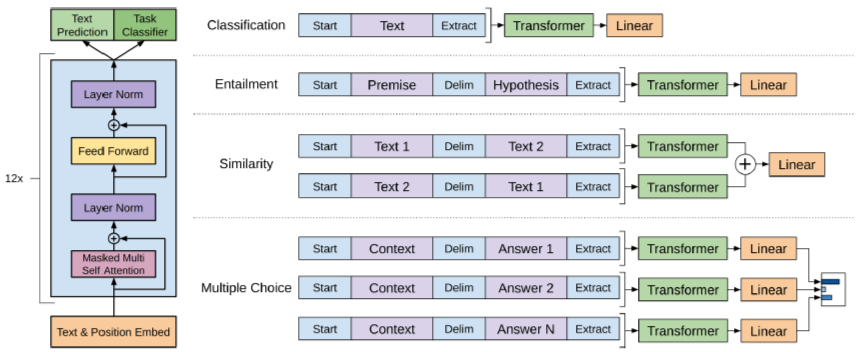 总体看下来,相较 GPT,GPT-2 在模型上并无特别大的改进,主要是使用了更大的语料集、更大的模型,以及在输入和模型上做了一些改进。
