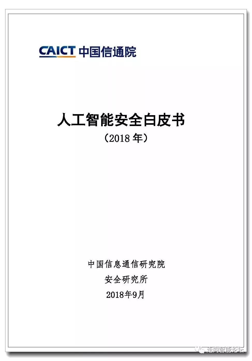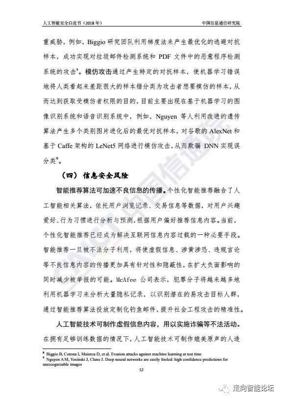 在“走向智能论坛”微信公众号回复“20180918”,可免费下载”《人工智能安全白皮书(2018年)》“完整PDF