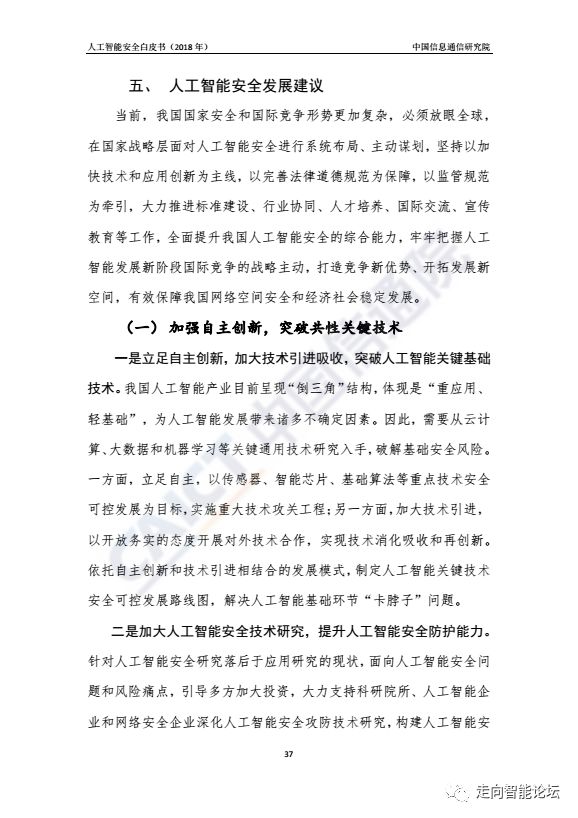 五、人工智能安全发展建议