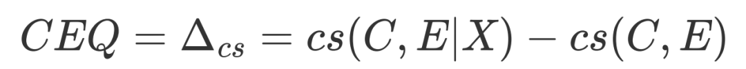 因此,我们可以通过衡量生成的解释能够为因果强度的度量带来何种程度的增益,来衡量解释生成的质量。因此,我们将CEQ定义为: