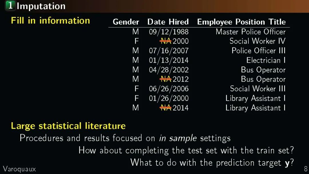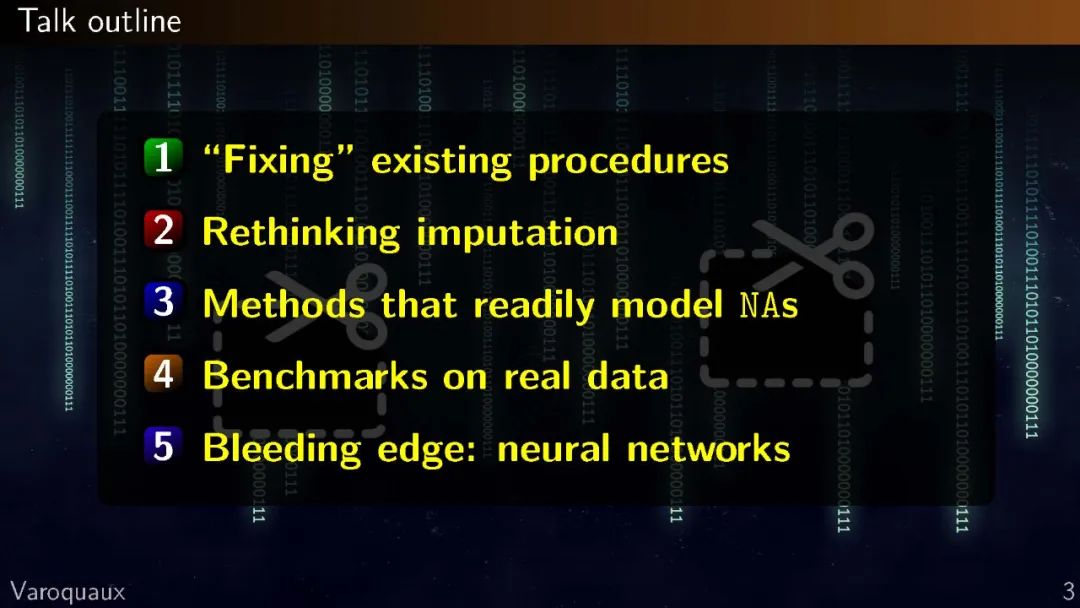 一个关于机器学习的教程,以建立缺失值的预测模型。这教程涵盖了理论结果(统计学习)和实践建议,重点介绍了使用scikit-learn在Python中的实现