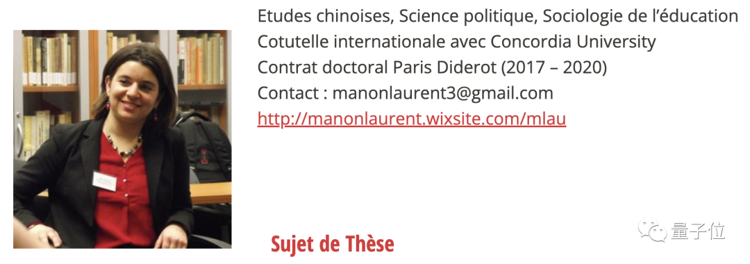 她现在是巴黎大学社会系的博士。此前曾在南京大学、康考迪亚大学、巴黎大学有过任教经验。