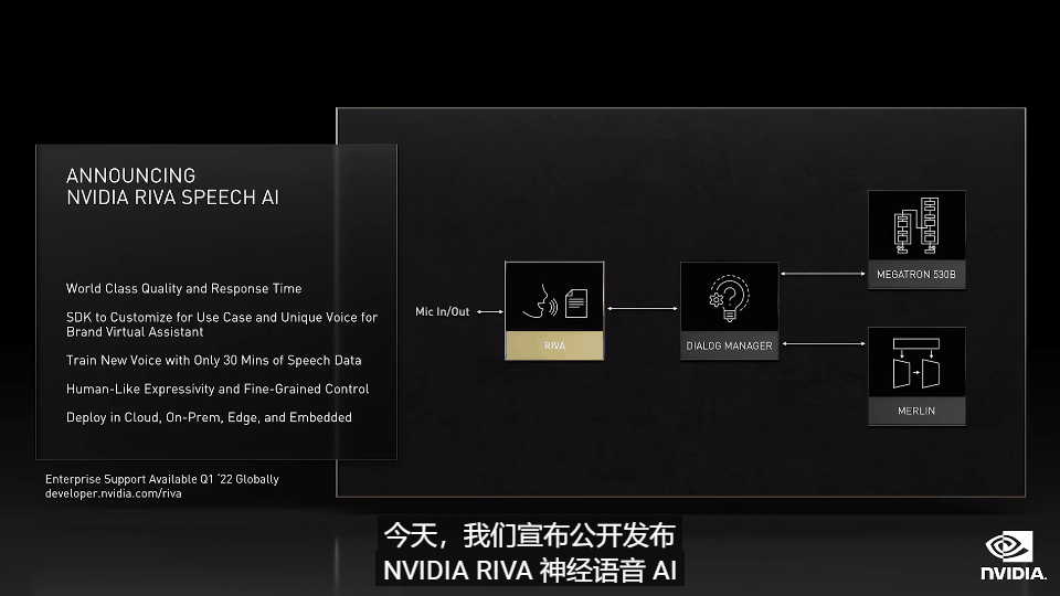 Avatar的语音识别基于英伟达Riva,这是一个软件开发工具包,可以识别多种语言的语音。Riva还被用来利用文本到语音功能生成类似人类的语音反应。