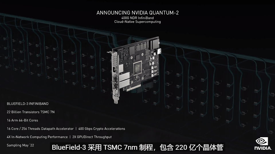 英伟达还推出了下一代 InfiniBand 网络平台Quantum-2,该平台可提供云计算提供商和超级计算中心所需的极致性能、广泛的可访问性和强大的安全性。