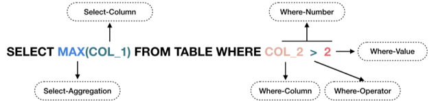最后,在输出层与损失函数部分,Where-Column 的损失函数被定义为了 KL 散度。并且,借助之前提到的引入的特殊列 [EMPTY],如果模型在预测 Where-Column 时,分数最高的列是 [EMPTY],那么就无视 Where-Number 所得到的预测结果,判断 SQL 语句为没有条件。