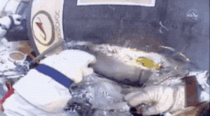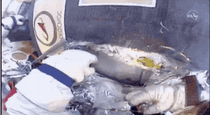 宇航员暴力破开口子的样子,和你们拆快递时挺像的。